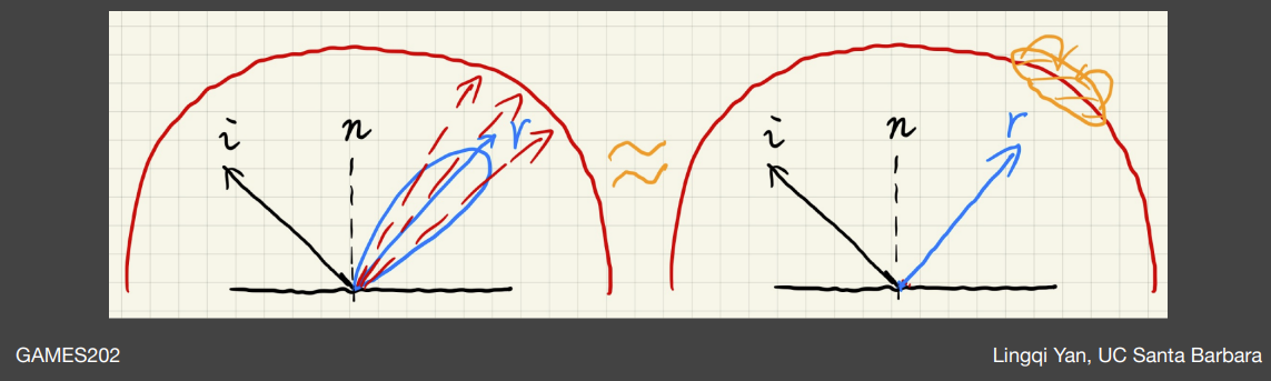 从 FRotationMatrix 能够得到以 Dir 为 x 轴的直角坐标系。首先将 Dir 在自己的 y 轴上旋转 ϕ,然后在自己的 x 轴上旋转 θ,得到随机角度。